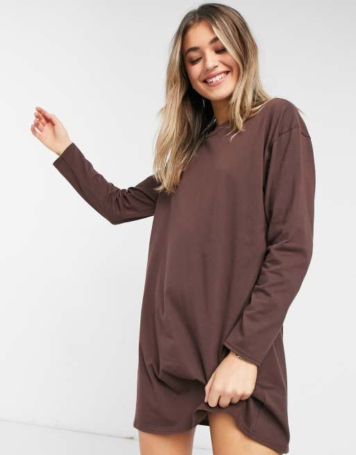 Asos Design Oversized Long Sleeve T Shirt Dress In Chocolate Brown Asos